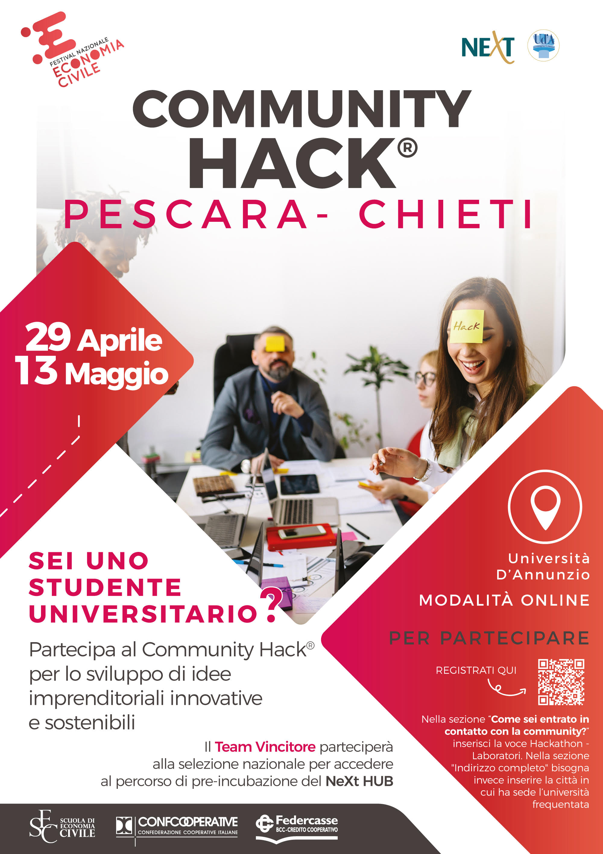 Si ricorda la possibilità di partecipare all'attività professionalizzante Community Hack promossa da CLEA-CLEAM in collaborazione con NeXt (Nuova Economia per Tutti).
