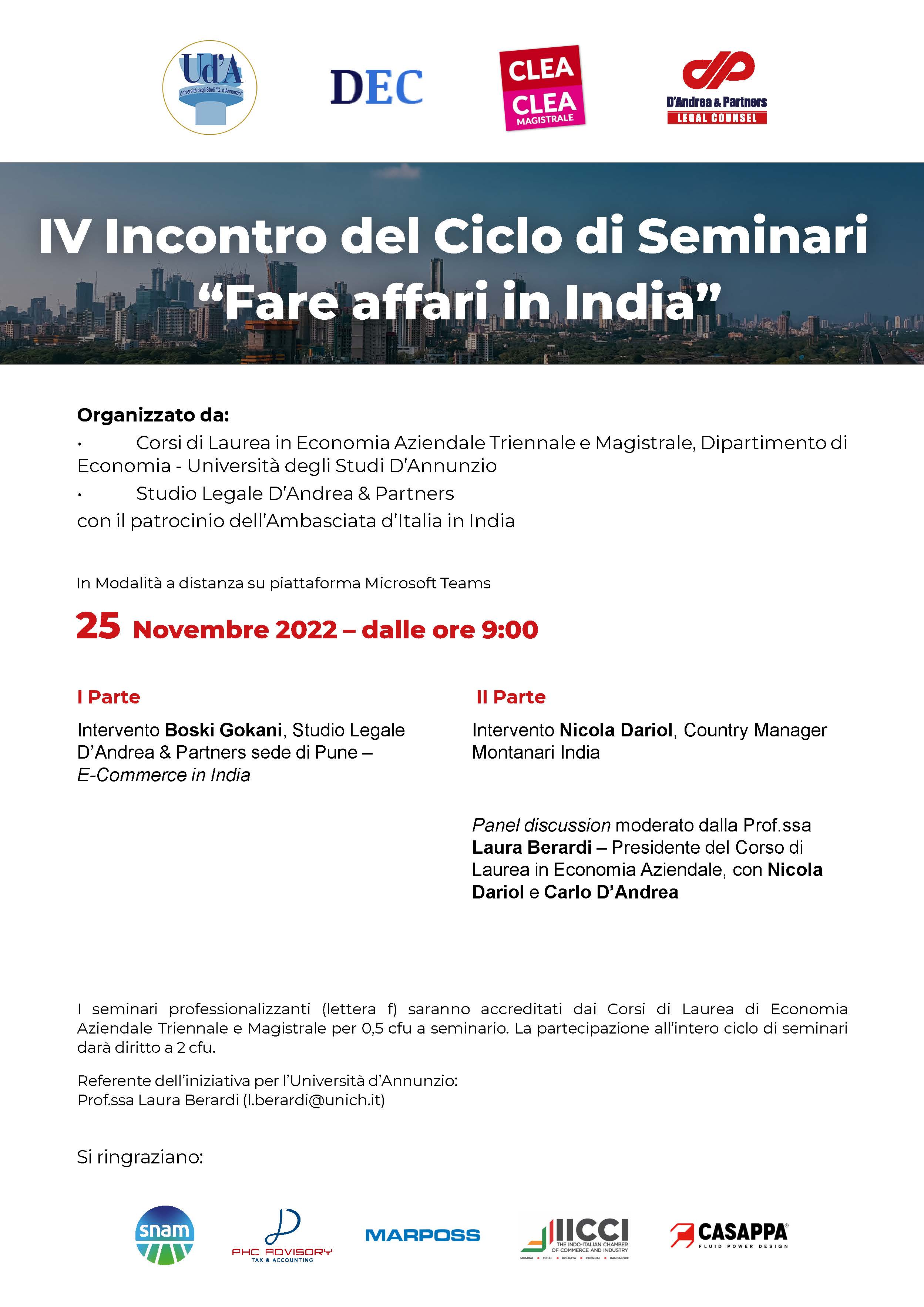 L'ultimo seminario del Ciclo FARE AFFARI IN INDIA si terrà domani mattina a partire dalle 9:00. Si parlerà di E-COMMERCE, ci saranno testimonianze AZIENDALI e si tireranno le somme del percorso che abbiamo fatto insieme alla scoperta di questo grande Paese.